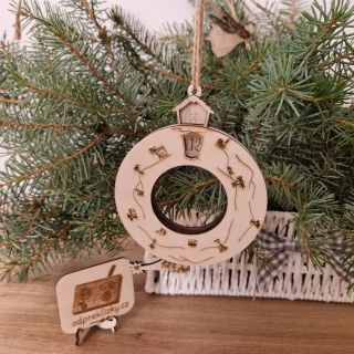 Tato originální dřevěná truhlička potěší nejen svým vzhledem, ale i obsahem. Uvnitř se ukrývá 12 krásných vánočních ozdob z překližky, které můžete použít na stromeček, věnec...