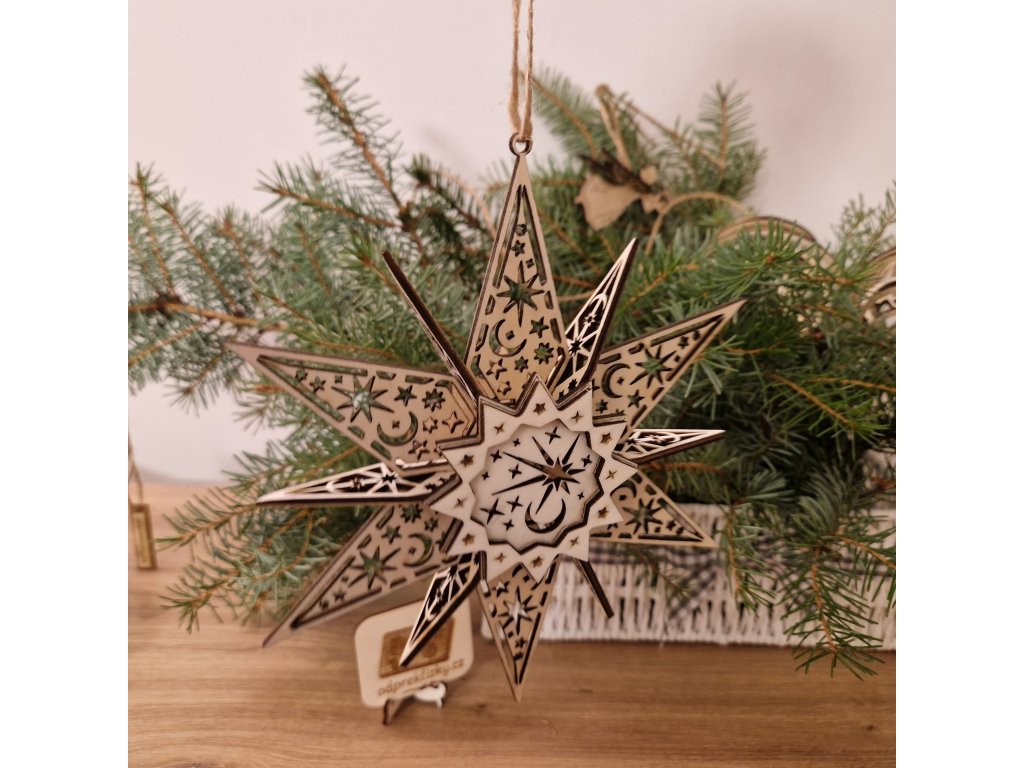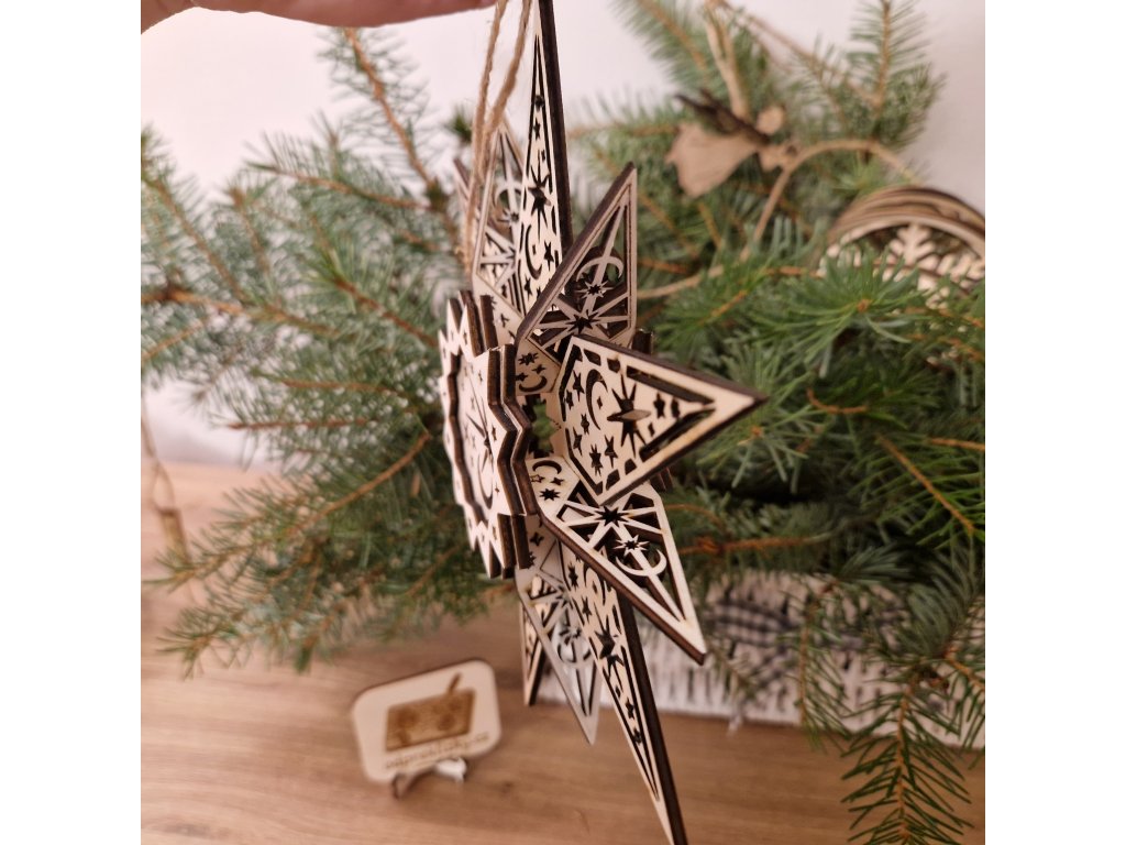 Elegantní vánoční hvězda z topolové překližky o průměru 20 cm je dekorací, která okamžitě navodí sváteční atmosféru.